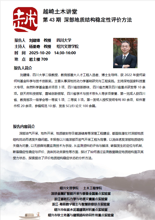 报告人:刘建锋教授 时间:2025-10-20 14:30-16:00 地点:岩士楼709