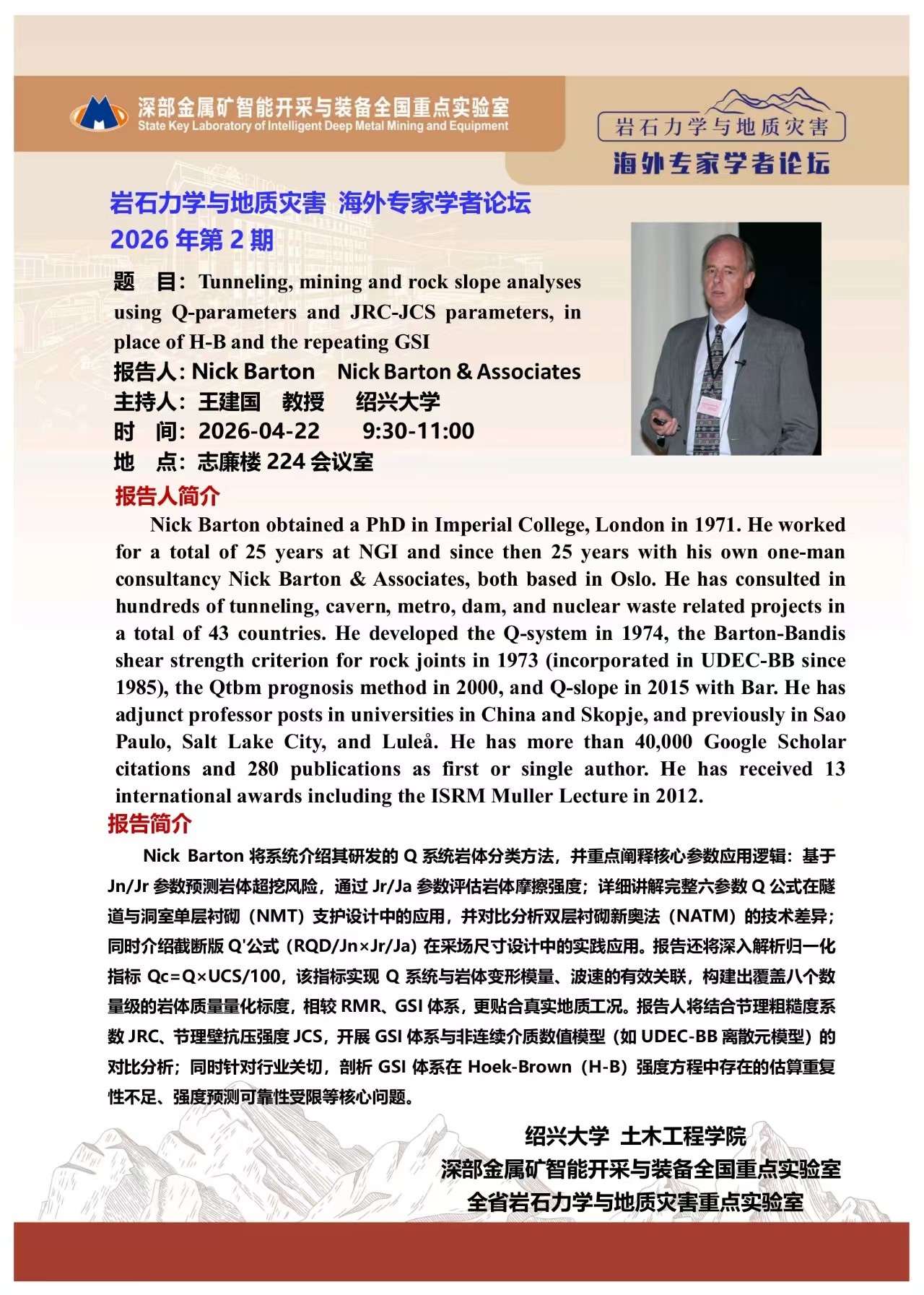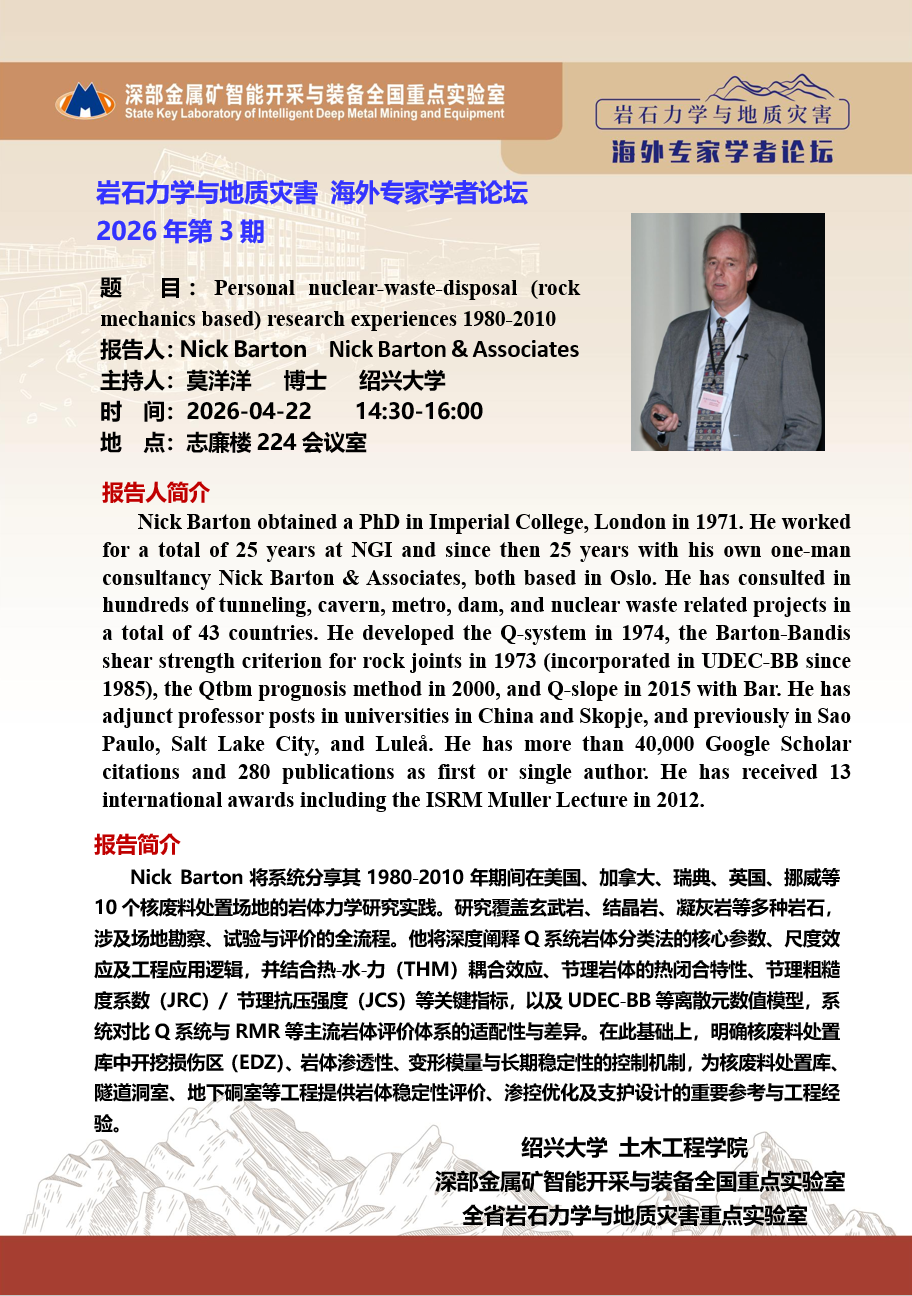 报告人:Nick Barton 时间:2026-04-20 9:00-11:00 地点:志廉楼224会议室
