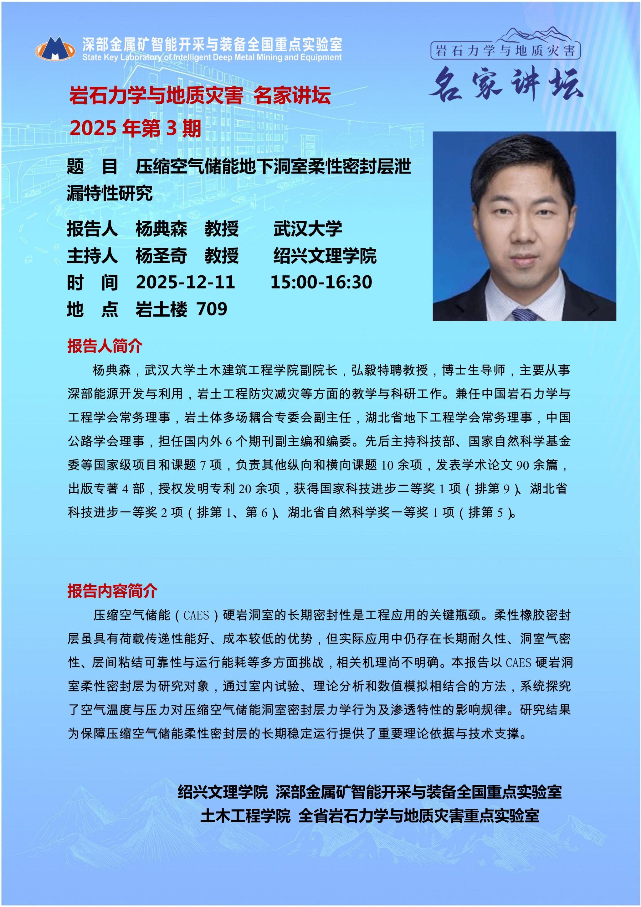 报告人:杨典森 教授 时间:2025.12.11 15:00-16:30 地点:岩土楼709