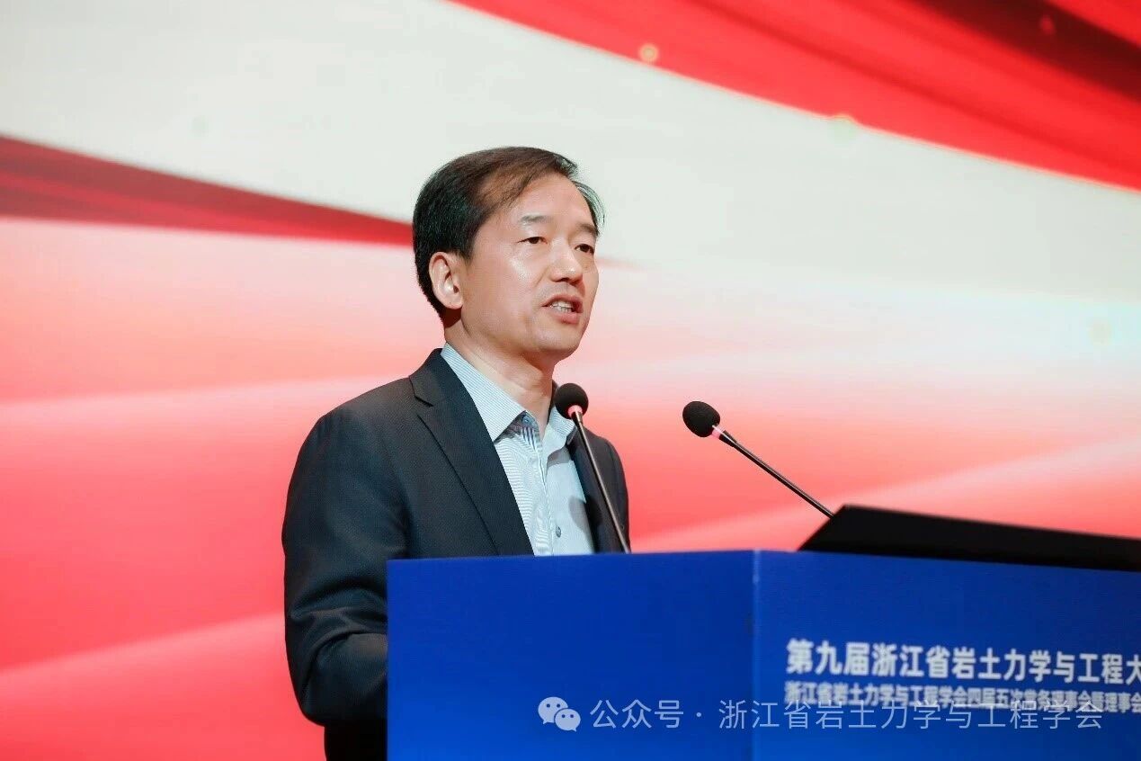 12月6日,第九届浙江省岩土力学与工程大会在素有“东南阙里、南孔圣地”之称的历史文化名城衢州隆重举行,本届大会以“绿色低碳下岩土工程的可持续发展”为主题。大会由浙江省岩土力学与工程学会主办,衢州学院、衢州市科学技术协会、浙江省岩土力学与工程学会古地下工程保护专业委员会承办,凌云建设集团有限公司、深部金属矿智能开采与装备全国重点实验室、浙江省岩石力学与地质灾害全省重点实验室、宁波大学、绍兴文理学院、浙江中信检测有限公司、浙江蛇蟠岛集团有限公司、龙游县文化和广电旅游体育局、龙游县文化旅游发展有限公司协办。大会邀请了中国科学院院士、中国地质大学(武汉)谢树成院士,中国工程院院士、学会理事长杜时贵院士,浙江省科学技术协会学会部副部长周红阳,浙江大学党委常委、常务副校长、教育部长江学者特聘教授、国家杰出青年科学基金获得者王立忠教授,衢州学院校长郑友取教授,浙江省特级专家、浙江大学张土乔教授,全国工程勘察设计大师、浙江省工程勘察设计院集团公司首席总工程师蒋建良正高,衢州市科协主席、党组书记俞继业,龙游县人民政府副县长沃海涛,教育部长江学者特聘教授、中国地质大学(武汉)朱宗敏教授,教育部长江学者特聘教授、浙江大学吕庆教授,浙江省土木建筑学会理事长、浙江省勘察设计大师、浙江省建筑设计研究院副院长、总工程师杨学林正高,中国电建集团华东勘测设计研究院党委委员、总工程师徐建军正高,绍兴文理学院党委委员、组织部部长黄曼教授,凌云建设集团董事长姚志云,凌云建设集团总裁姚晓鹏,浙江中信检测有限公司总经理沈军,浙江蛇蟠岛集团有限公司总经理杨俊健,上海大学孙德安教授,中国科学院地质与地球物理研究所张路青研究员,国家级青年人才、浙江大学海洋研究院副院长王立林教授,国家级青年人才、浙江理工大学闻敏杰教授,学会副理事长孙红月教授、高金康正高、彭丁茂正高、周建教授,学会监事长杨建辉教授,衢州学院建筑工程学院党委书记陈德力等嘉宾出席。学会常务理事会成员、理事会成员、学会会员,以及岩土力学与工程领域的知名专家学者和一线工程技术人员超300人出席大会。